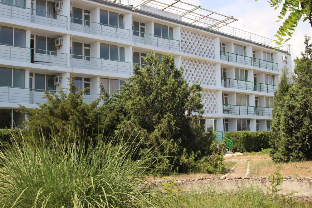 В курортной зоне Евпатории прямо на берегу Черного моря расположен гостиничный комплекс.