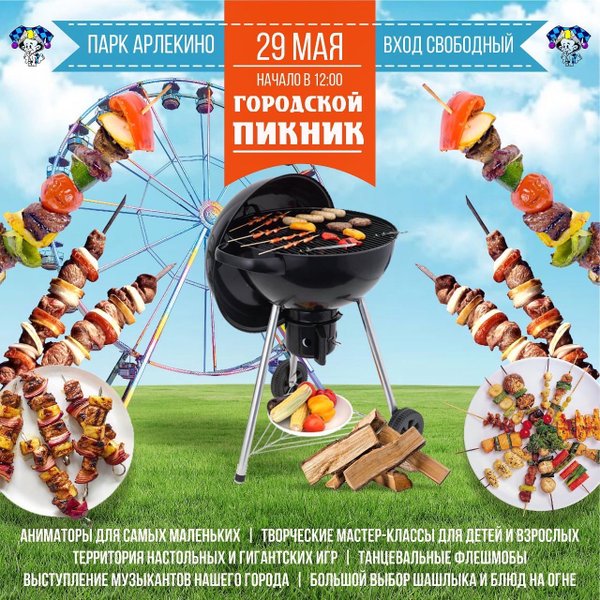 На территории парка «Арлекино», в Гриль-парке «Засада», есть несколько беседок для пикников. Они рассчитаны на компанию от 8 до 30 человек, каждая оборудована мангалом.
