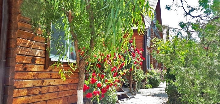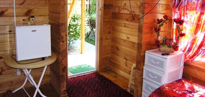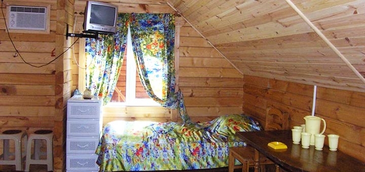 А також тримісні номери «люкс» в екологічних деревяних зрубах (душ, туалет, гаряча вода, кондиціонер, холодильник, супутникове телебачення, мінібар) - 28 номерів.