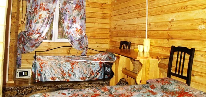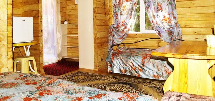 Варианты размещения в номерах: — 2-хспальная кровать + отдеельное спальное место — 3 раздельных места стоимость проживания в срубах май и сентябрь 250-300 грн, июнь — 350-400 грн, июль-август — 450-500 грн в сутки за номер.