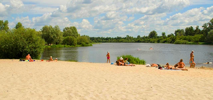 Пляж на базе отдыха «Авиатор». Забронировать номер на базе отдыха со скидкой. Отдых на Десне недорого.![]()
