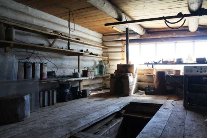 "Главный корпус" зимовья. "Главный корпус" зимовья.В нем большая комната с полатями, двуярусными, стол, печь, газовая печь с балоном. Довольно просторно. Здесь можно готовить еду, есть свет, так как работает генератор. Помещается на полатях до 12 человек.