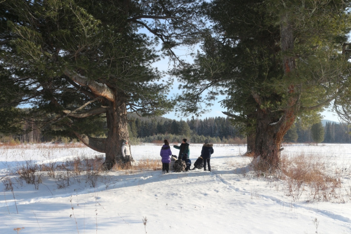 Само зимовье расположилось на живописном месте, на полянах, окруженных со всех сторон лесом и сопками. А по опушкам растут 400 летние кедры. Это гордость нашего северного Урала.