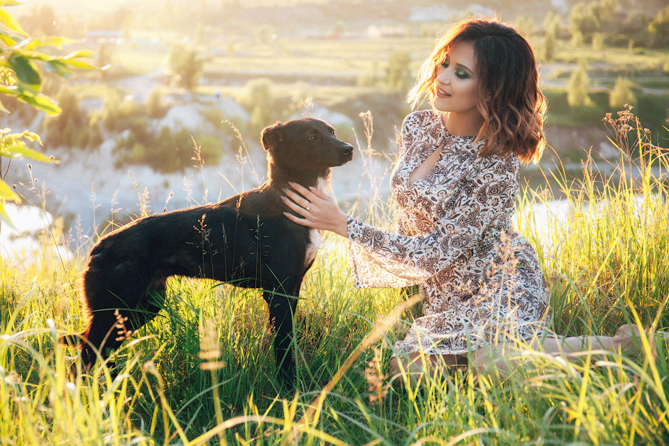А голубое небо, солнце и чистый, свежий воздух, несравнимый с загазованной городской атмосферой, добавляют преимуществ этому месту. С удовольствием не перестаю щелкать затвором фотоаппарата, ведь закатные краски так скоротечны и такие волшебные, никак не могу остановится. Этот процесс однако прерывает незваный гость, поднявшись к нам снизу из карьера. Прямо посреди фото-сессии милейший собакен решает принять в ней участие, а мы и непротив! :)