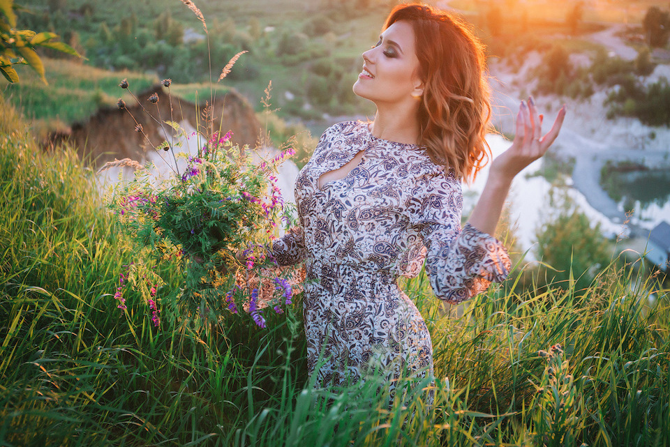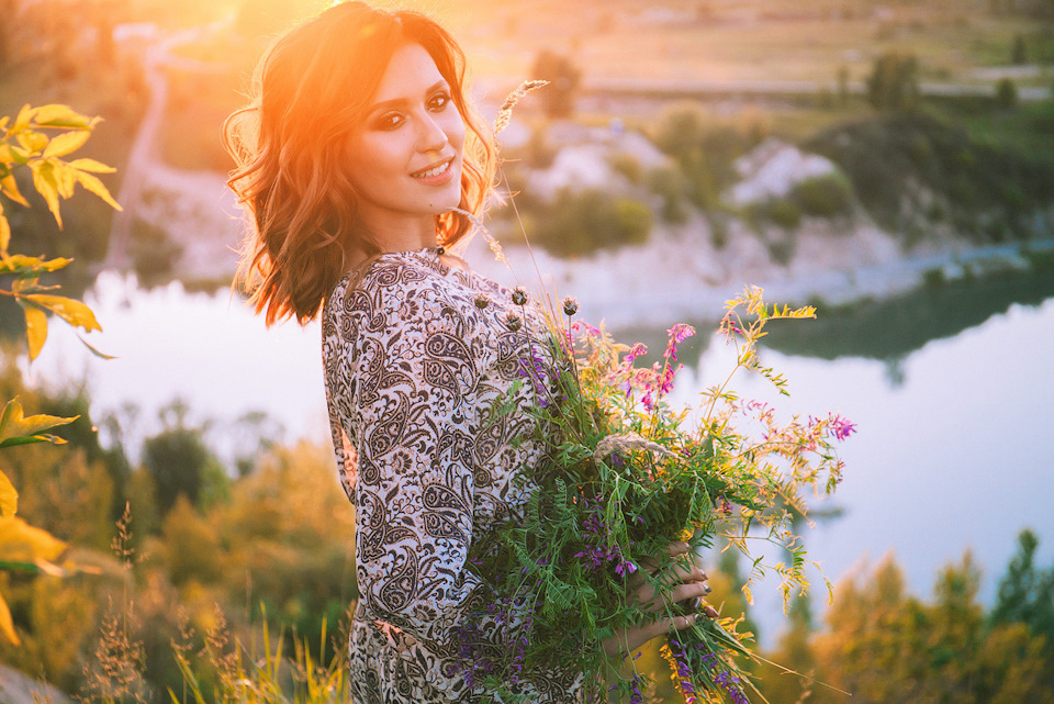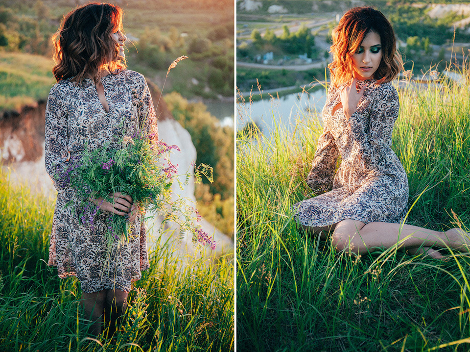 Чувствую, чего-то не хватает… Оживляем кадры букетом полевых цветов — их тут целое море среди изумрудной травы. Кажется, где-то внутри меня притаился флорист. С каким-то особенным удовольствием формирую импровизированный букет, вплетаю туда разную травку, колоски и сухие прошлогодние растения.