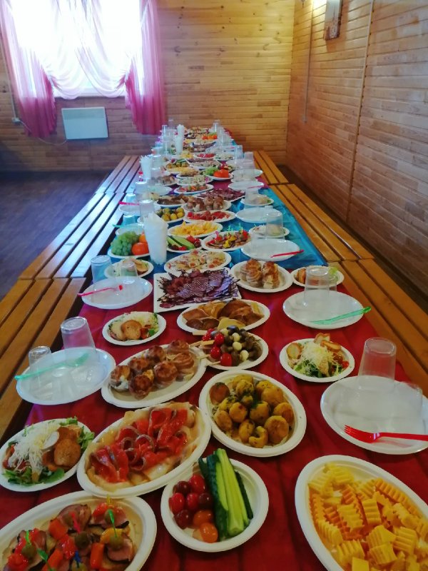 - отапливаемый банкетный зал вместимостью 35 человек (оформление деревом, столы, лавки, электричество, чайник, микроволновая печь, санузел, мангал),