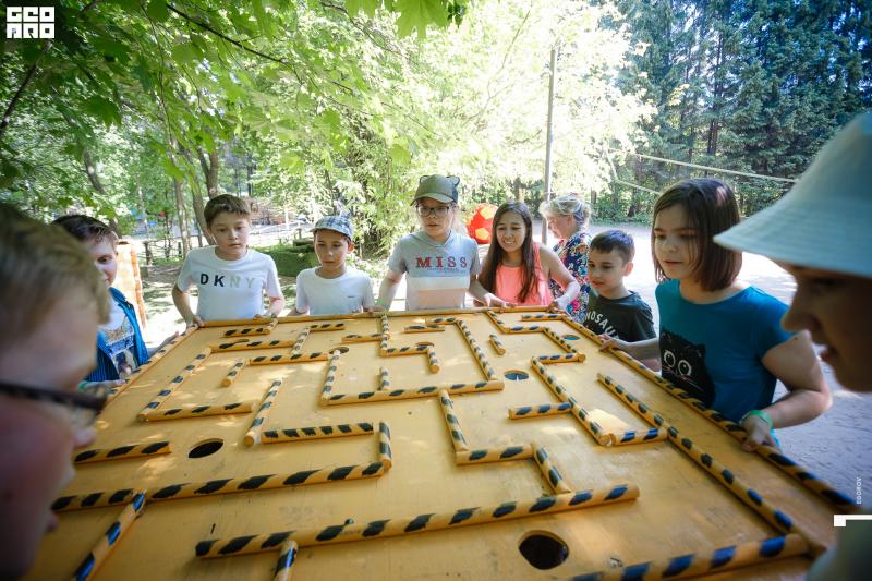 На территории площадью 1.5 Га размещены 2 игровые локации. Они оборудованы множеством деревянных щитов, другими объемными фигурами из дерева, построены несколько вышек.