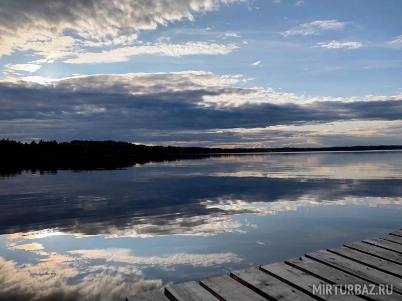 Озеро Волго очень большое и чистое - 5 км шириной, по центру его протекает река Волга. Исток р.Волга начинается в 80 км. от нашей турбазы. От истока до оз.Волго, нет ни одного завода - нет никаких сливов, поэтому в нашем озере вода экологически чистая и рыба очень полезная. Берега у озера без зарослей и обрывов, плавно переходящие в глубину, дно песчаное. В нем водится много различной рыбы: судак, щука, налим, окунь, лещ, подлещики, плотва и другая рыба.