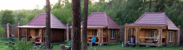 Три летних домика из круглого бруса с большими верандами. На веранде каждого из домов: стол, лавочка, охладитель для напитков. Площадь каждого домика 20 кв. м. В каждом домике три односпальные кровати, телевизор. Возле каждого домика мангал. Удобства - душ и туалет в отдельном помещении неподалеку. Размещение в домиках с мая по сентябрь.