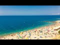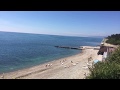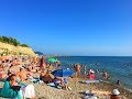 Пляж покрыт средней и мелкой галькой, такое покрытие очень полезно и приятно для стоп ног.