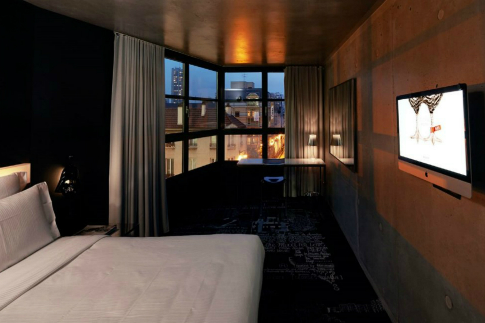 В каждом номере отеля есть 27-дюймовым iMac с бесплатными опциями: смотрите кино, играйте в игры, делайте селфи, работайте, болтайте с друзьями по скайпу. Когда наиграетесь и захотите прогуляться по Парижу, спросите совета у электронного консьержа в холле. Консьерж — это сенсорный экран, напичканный полезными рекомендациями: куда сходить, где поужинать, как добраться до Монмартра или музея Орсе, — он знает всё.