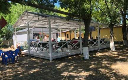 Место отличное! Первый раз приехали на выходные, второй раз на недельку. Территория очень нравится. Все в деревьях. Домики неплохие, но очень компактные. Хорошие туалеты и душевые. Все чисто. Пляж рядом, но нужно в воду заходить в специальных тапочках ибо в воде камни. Либо идти по набережной около километра, там меньше камня. Мужчина-администратор - огонь просто! Решает все вопросы очень быстро и всегда выходит в положение гостя. Все запросы выполняются очень быстро и в пользу гостя. Администратору отдельный респектище! Из минусов только столовая. Пошли пообедать - ждали 20 минут пока к нам подойдёт официант. При чем на просьбы подойти - официанты не откликались. Нас было четверо. Сделали заказ: солянка, борщ, плов, блинчики. Хм. Ждали около 40 минут. Из всего выше перечисленного съедобный был плов и более менее борщ. Очень расстроил этот факт. Да и чтобы получить счёт - нужно идти на барную стойку.