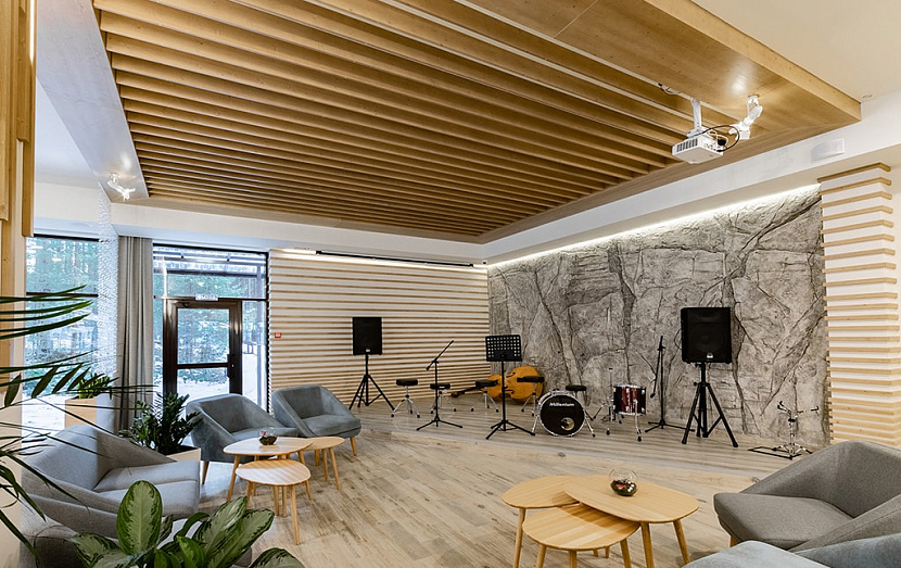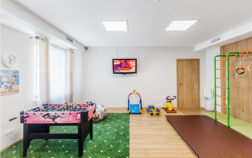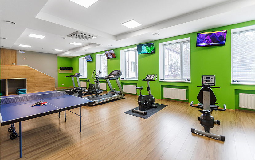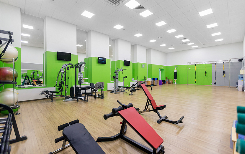 - Крытые залы: зал ЛФК, спортзал, тренажерный зал