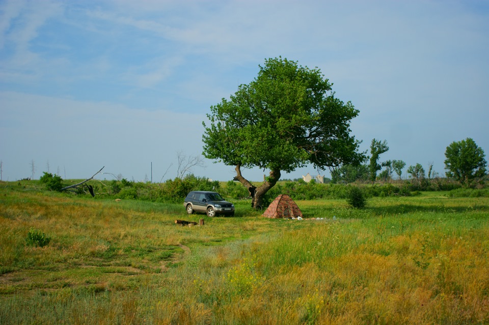 Наш лагерь!)) Тот самый дуб! Единственно где можно найти тень) Вот раньше там за дубом вокруг был лес! сейчас об этом даже не догадаешься.