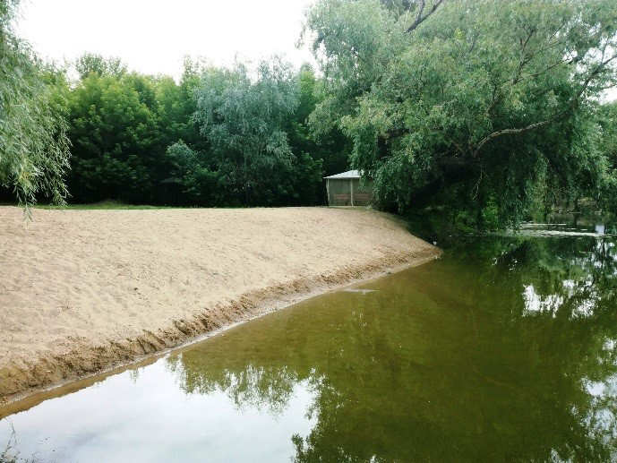 - Персональный пляж с понтонами и мягким песком в месте, где река течёт тихо и размеренно, что идеально как для плавания, так и для рыбалки;