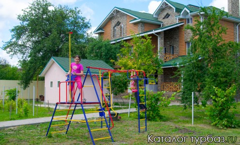 База отдыха «Правый берег»: номера со всеми удобствами, кухня, кафе, автостоянка, детская и спортивная площадки, детский бассейн, пляж на берегу реки Дон.