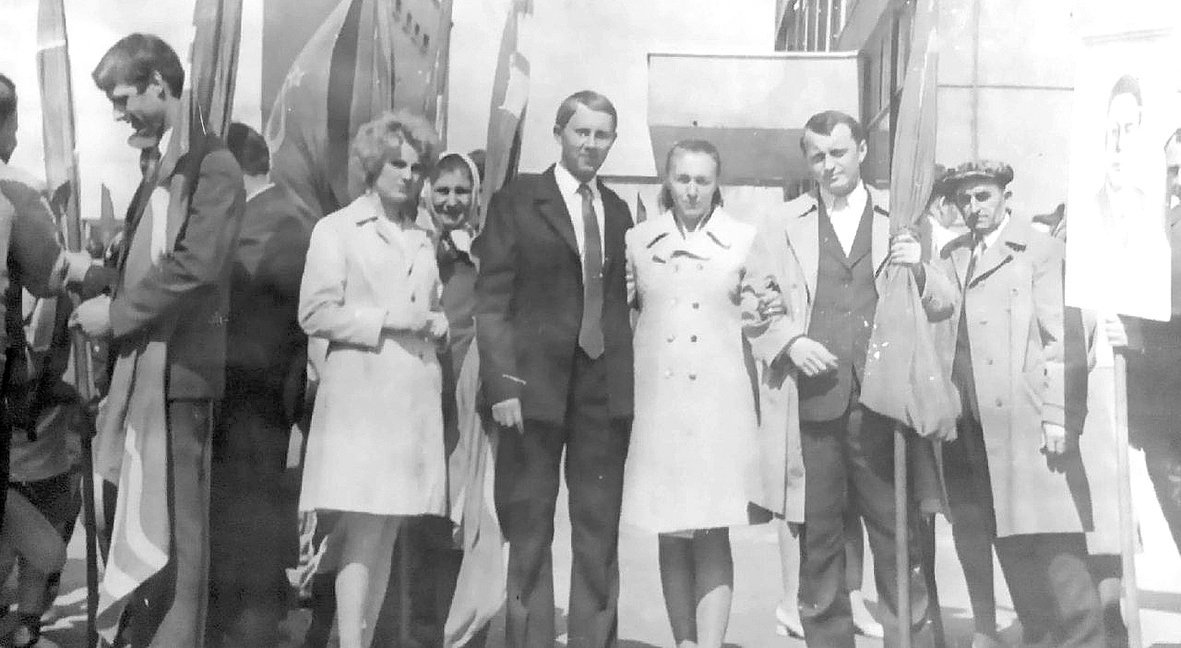 Дружный коллектив предприятия на первомайской демонстрации, 1974 г.