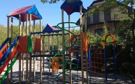 Территории базы утопает в естественном горном смешанном лесу с преобладанием деревьев и кустарников хвойных пород, сосна, можжевельник. Оборудована зона отдыха, большая беседка со стационарной зоной барбекю, обустроена детская площадка. Имеется парковка.