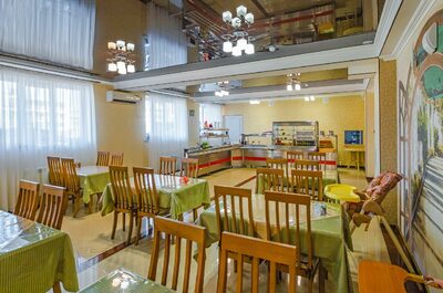 Отдыхали в июле 2021. Плюсы: Гостевой дом - чисто, уютно, есть детская игровая комната, своя столовая, бассейн небольшой но вполне можно искупнуться, вода чистая и теплая. В номере нет чайника но на каждом этаже стоят кулеры, для нас это было не принципиально, мы как-то и не пользовались. Море рядом - минут 5-7 идти. Столовая отличная! Все вкусное, по-домашнему - сырники, запеканка (прям отлельное спасибо, очень вкусные😋), яицница, блинчики, выпечка, на обед 2 вида супа, на второе выбор нормальный. И ценники приемлемые. Приветливый обслуживающий персонал. Рядом с гостевым домом много столовых, кафешек, аквапарк Олимпия, но при этом вполне тихо и звуки посторонние не докучают если закрыть окна. При наличии ребенка это особенно порадовало. Минусы: Номер - в ванной когда моешься не закрепить душ 🚿, попросту сломан крючок. Подушки. Кошмар жесткие, спать не удобно, но опять же всем наверное не угодишь, кто как привык. Гладильная доска и утюг только на втором этаже. А не как заявлено в описании, якобы на каждом этаже. Теперь про рекомендации отдыхающим. 1) При оплате брони уточняйте на каком этаже вам достанется номер. Нам достался на третьем, с ребенком тяжеловато. Думаю это изначально можно обговорить с администратором. 2) Номеров с видом на море нет, одни номера выходят на бассейн, другие на проезжую часть (где паркуются машины), и еще номера, где балконы упираются в другой отель, расстояние небольшое. У нас был номер с окнами на дорогу, и третий этаж, нам нормально было, сидели поздними вечерами на балконе за столиком, и наслаждались отпуском. Поэтому кому эти моменты важны, уточняйте заранее. Наверное и все. В целом нам все понравилось относительно гостевого дома. Но вот море не понравилось, просто кисель из тины. И на пляже был рой из божьих коровок, которые летели в лицо, на тело, и кусались. Говорят это впервые такое нашествие в этих местах.