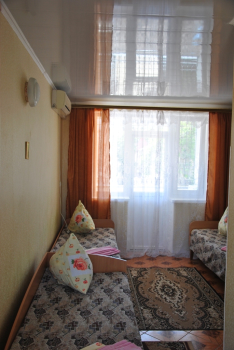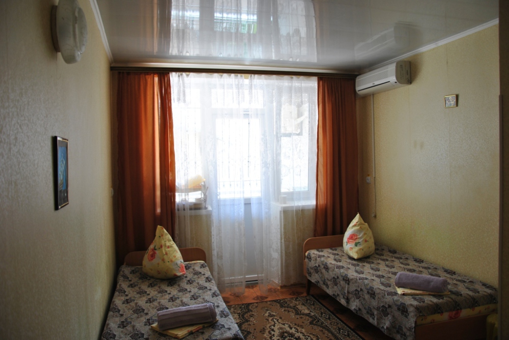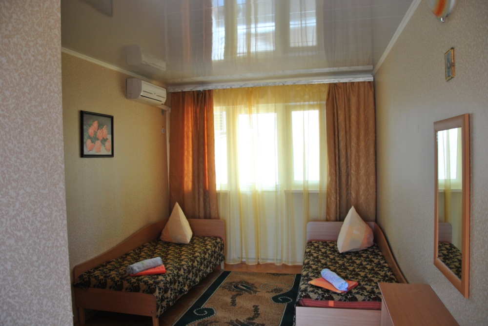 Гостиничный номер. В номере находиться двух спальная кровать или две односпальных кровати; кондиционер; телевизор; холодильник. Номер соответствует фотографиям. При желание можно добавить дополнительное место для ребенка. Большой балкон, на котором находиться обеденный стол, со стульями. С видом на озеленённый и тихий двор.