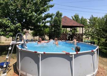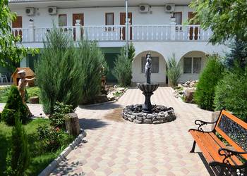 Территория. Есть место для приготовления шашлыка, мангал и барбекю. Двор очень уютный хорошо озеленен, водоем с фонтаном, возле каждого номера индивидуальные беседки и столики. Во дворе детский бассейн, качели для маленьких детей. Рядом детская площадка и продуктовый магазин.