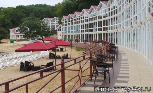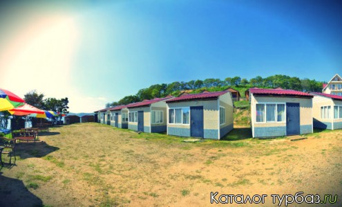 Оба склона, которые будто своими крыльями укрывают территорию базы, расположились таким образом, что одна группа летних строений будто возвышается над морской гладью, в то время как до остальных домиков от морского берега рукой подать.