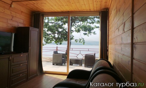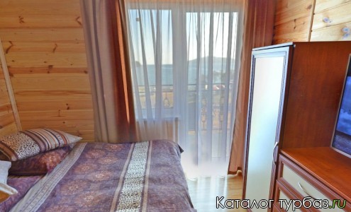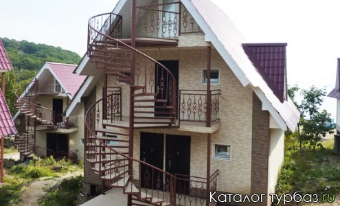 Летний дом с балконом. На территории базы отдыха располагаются восемь индивидуальных летних дома типа «Летний дом с балконом». Большие летние дома площадью 20 м. кв. 4-х местного размещения для отдыха большой семьи или тесной компании расположены на возвышенности, с которой открывается чудесный вид на море. Дома имеют большую комнату 16 м. кв. и не остекленную террасу 6 м.кв., свой санитарный узел 4 м.кв. Дома, стоят в одну линию и обращены к морю, расстояние между домами в ряду два метра. Каждый дом изготовлен из натурального дерева, а отделка выполнена из натурального кедра.