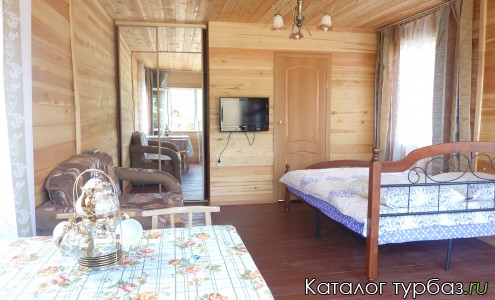 Гостевой домик: представляет собой одноэтажное строение с общей гостиной комнатой и коридором, максимальная вместимость 5 человек (без учета подселения).