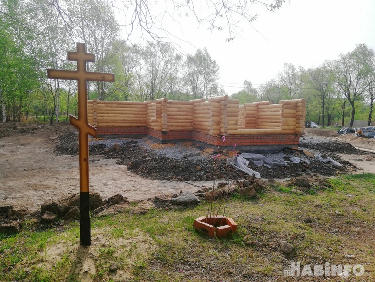 Сейчас дело сдвинулось, край с городом наконец-то договорились, и в конце прошлого года на территории появился православный крест, в знак того, что на этом месте будет воздвигнут храм. А уже в начале нынешнего апреля приступили к возведению церквушки. Здание собирают из деревянного сруба, к осени обещают закончить. Храм будет небольшим, всего на 120 человек. Бревна закуплены, заботливо сложены рядом на пустыре и пронумерованы. Заготовлен и золоченый купол. Рядом с храмом решено установить небольшую звонницу. Это, конечно, не пляж или спортивная площадка, как планировалось ранее.