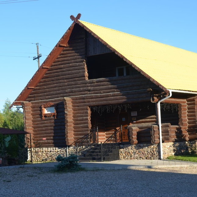 Небольшая ухоженная охраняемая территория, на которой располагается десяток деревянных домиков. Есть баня, трактир, сауна с бассейном (но, как нам сказали, там холодная вода), караоке. В самих домиках уютно, правда, наш улучшенный номер был на первом этаже, над нами носился ребёнок, с такими перекрытиями всё очень хорошо слышно. Машину можно оставить прям около домика.