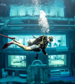 Самый глубокий бассейн в мире открылся в Дубаи. Бассейн глубиной 60 метров является частью нового аттракциона Deep Dive Dubai. В бассейне помещается 14 миллионов литров пресной воды – это минимум в четыре раза больше, чем в любом другом бассейне для дайвинга в мире.