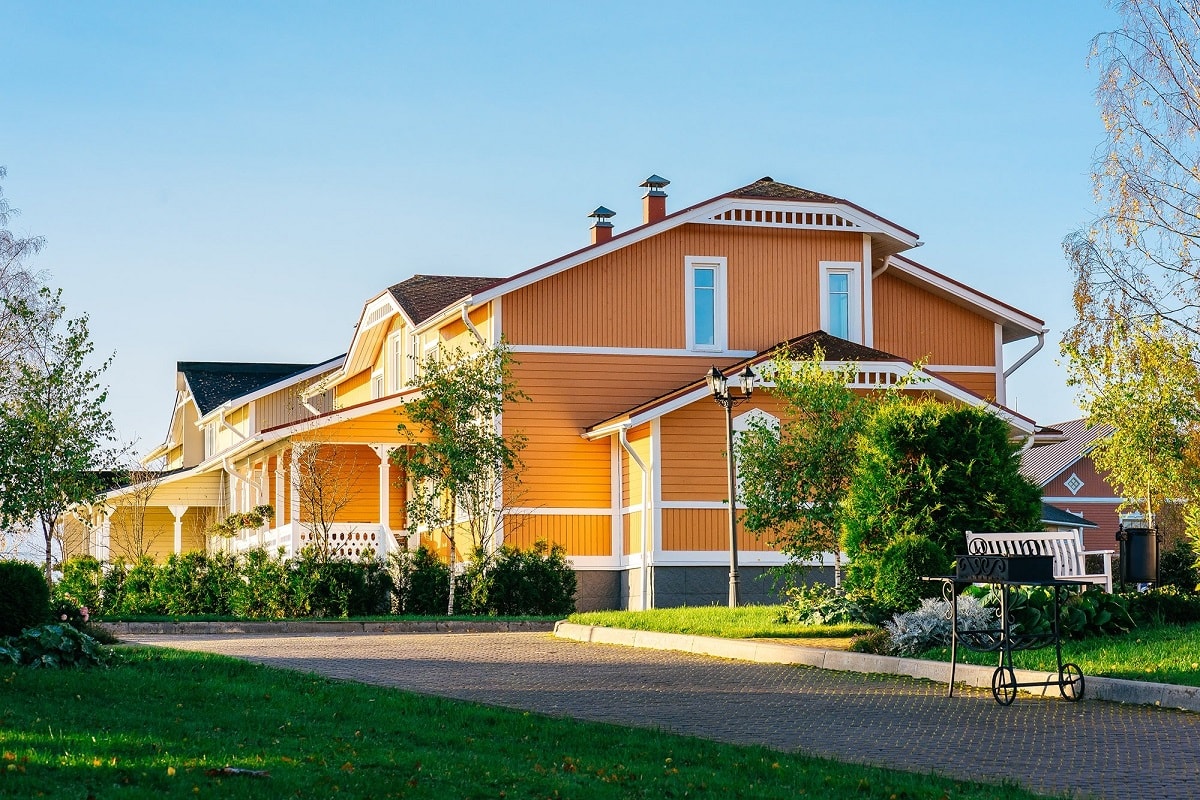 Дом на 40 чел.: двухэтажный деревянный дом.