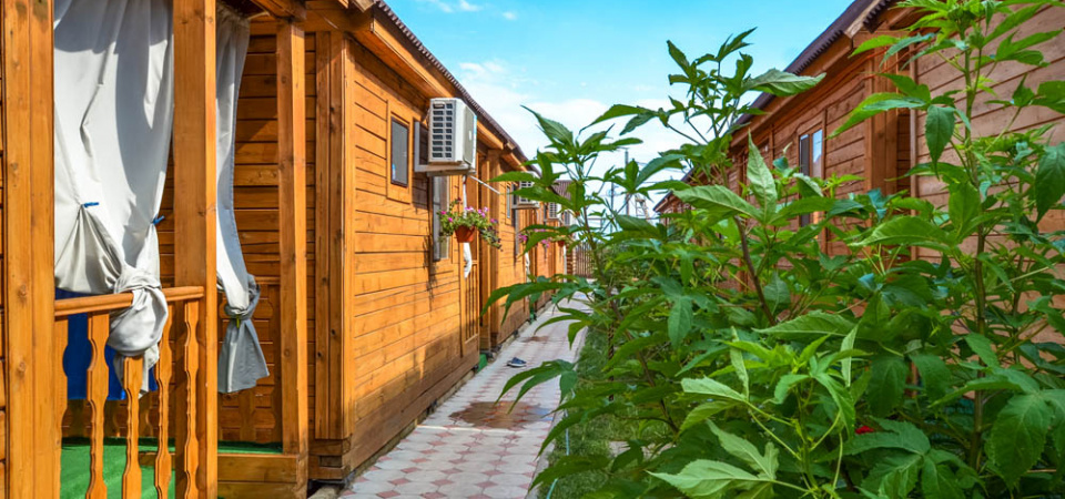 Деревянные коттеджи имеют две и три комнаты со всеми удобствами.