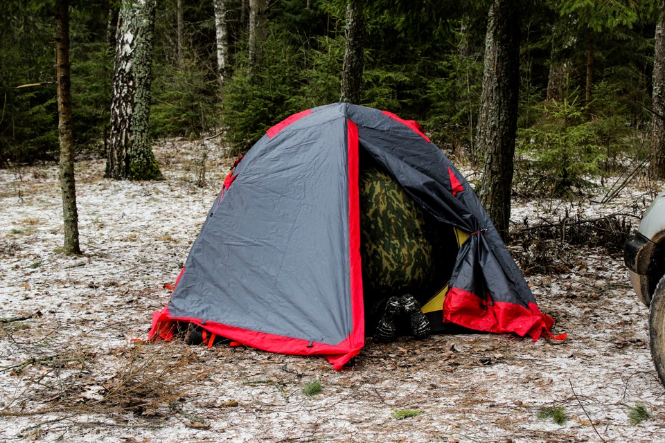 А Серёга и Вова тестили новые зимние спальники в палатке: