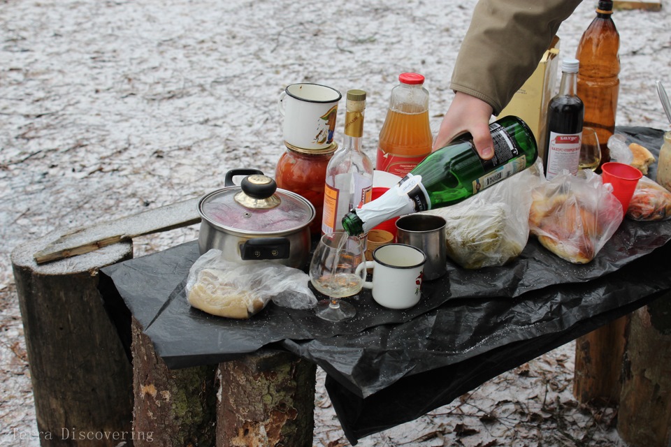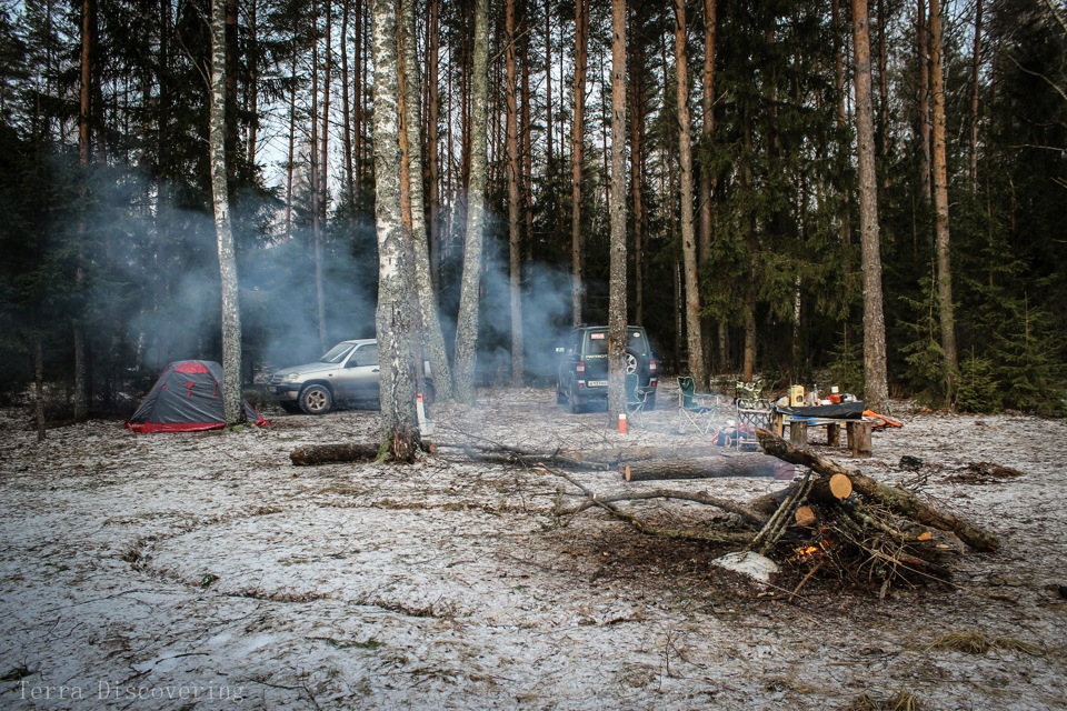 Ну а мы с Серёгой неспешно выпиваем готовим лагерь и дрова: