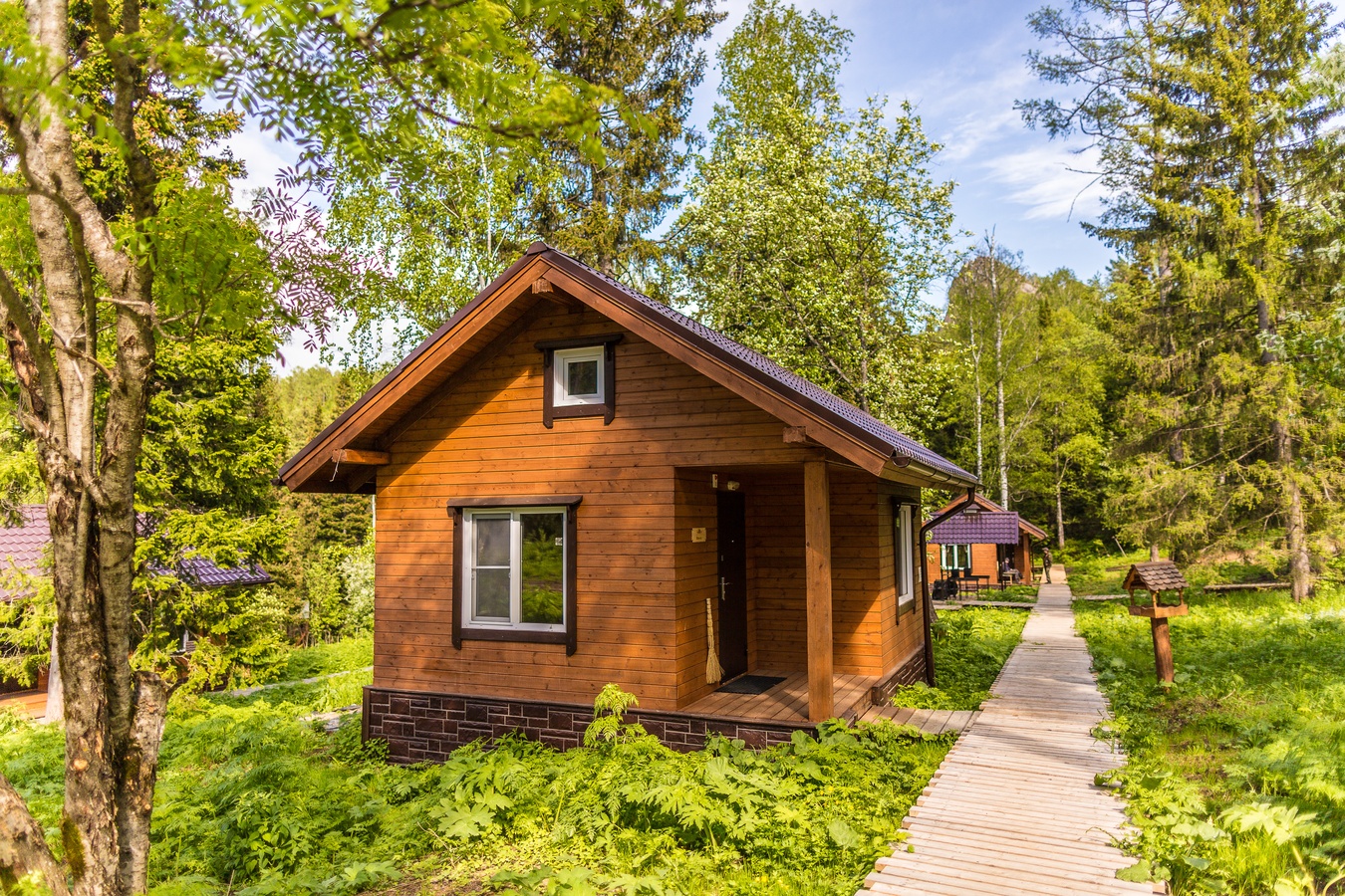 В каждом домике могут разместиться 6-7 человек. Здесь удобные спальные места, оборудована небольшая кухня с микроволновкой, чайником и посудой. Душ, туалет, большая столовая и кухня расположены в центре городка в административном корпусе «Уют».