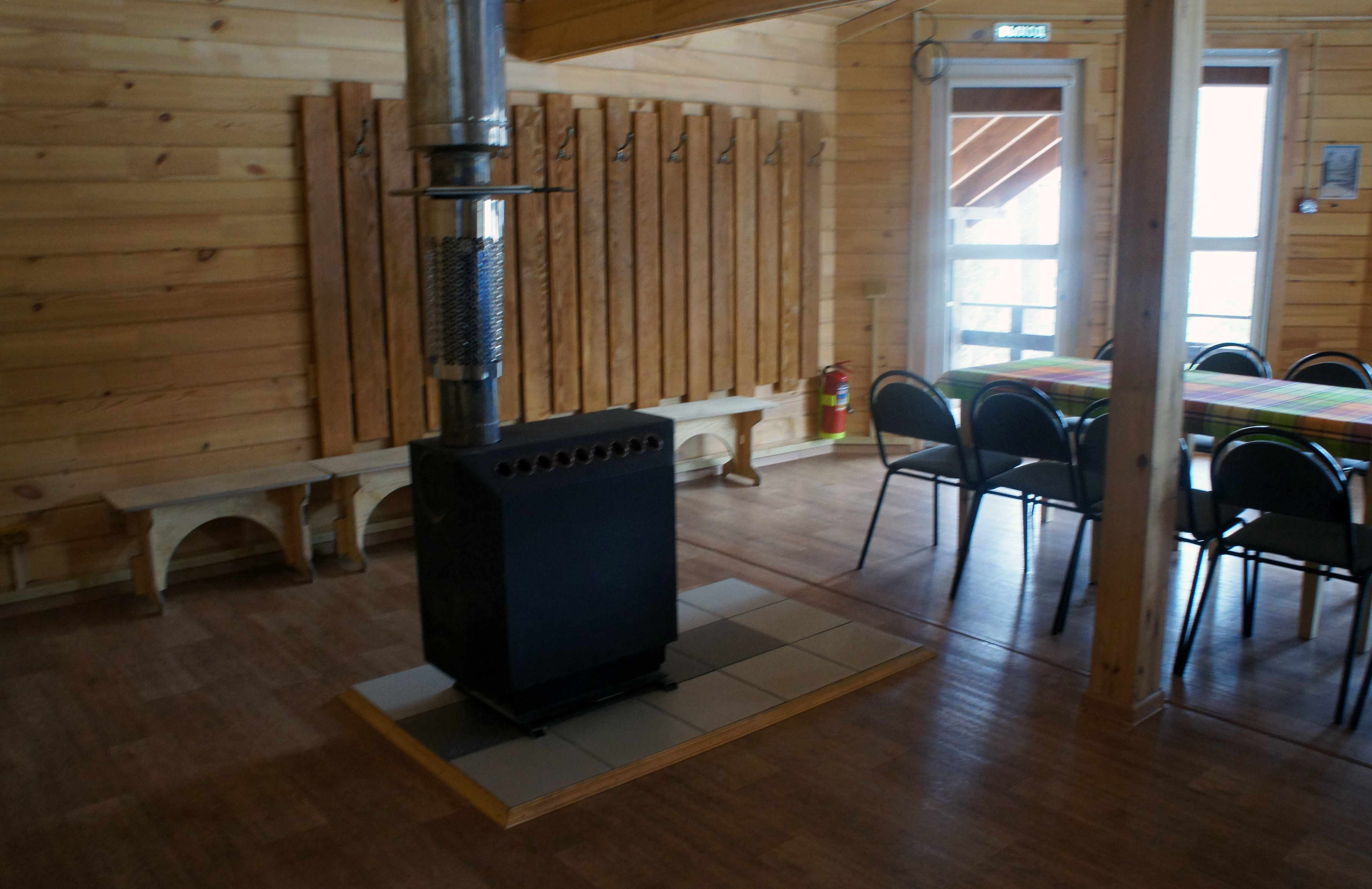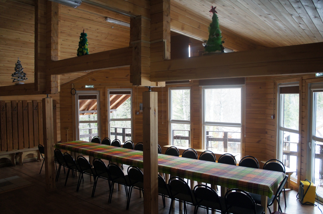 Круглогодично принимающее посетителей помещение на 20-35 человек для проведения организованных мероприятий. Столы, стулья, печь, чайник, микроволновая печь.