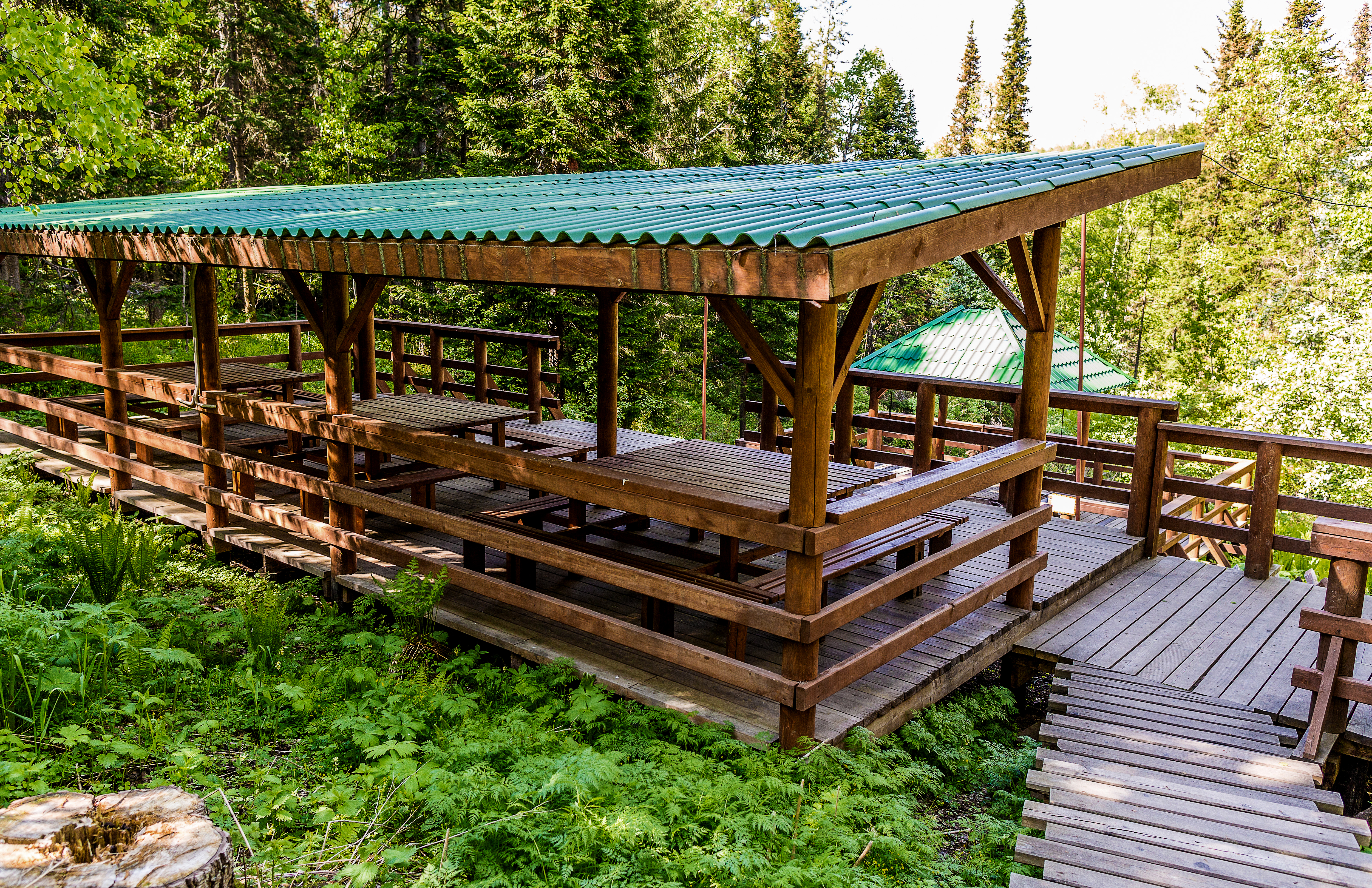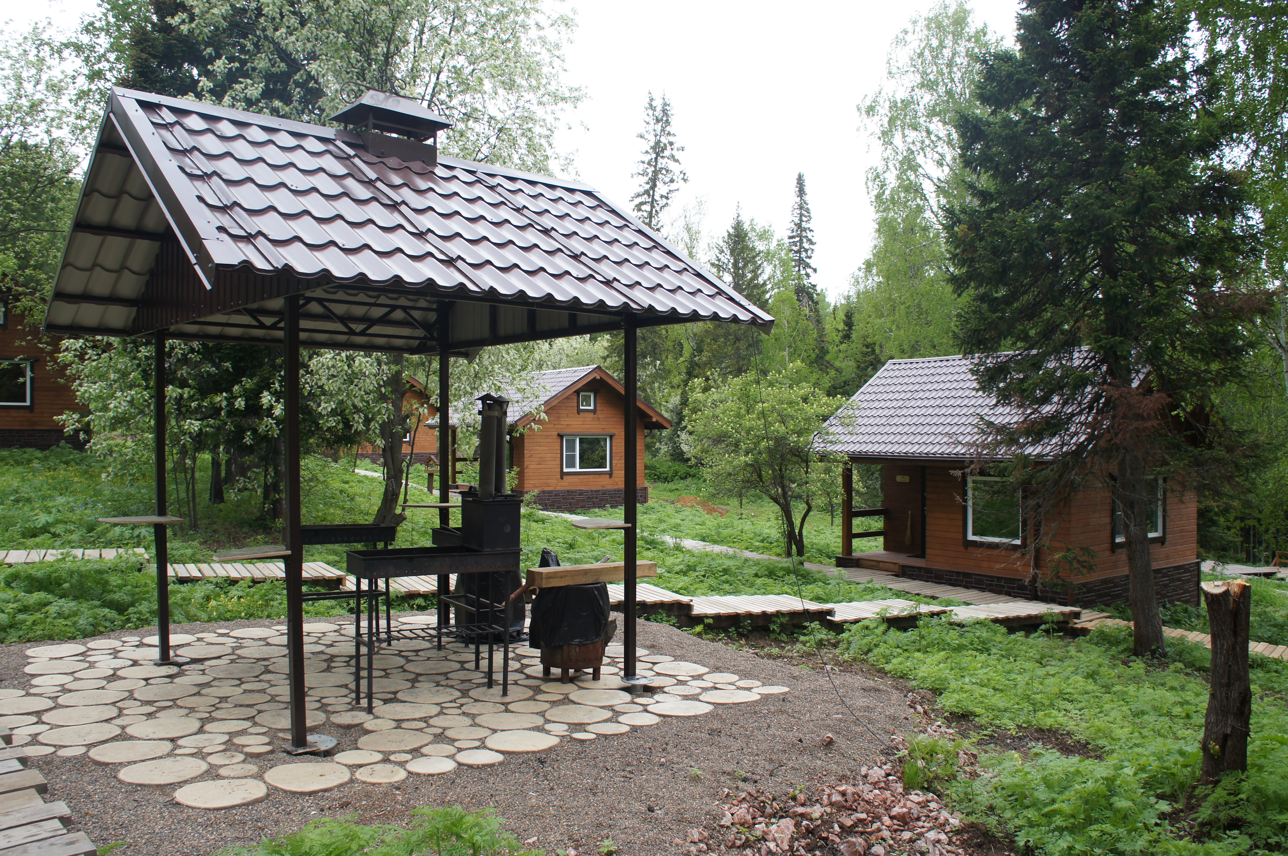 На территории Научно-познавательного городка «Нарым» размещена оборудованная беседка для приготовления пищи на открытом огне.