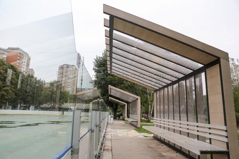 1 | 10В парке также реконструировали хоккейную коробку. Зимой на новом катке с искусственным льдом будут проходить тренировки, соревнования и катания на коньках. Сюда смогут прийти все желающие. Летом ледовую арену планируется использовать как поле для игры в мини-футбол.