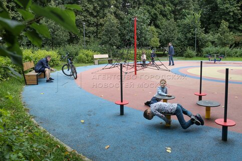 Отдых горожан в парке имени Святослава Федорова на севере Москвы.