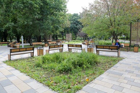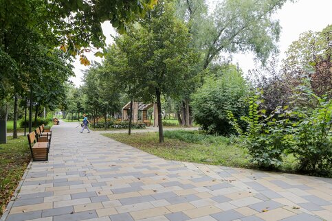 Прогуляться по парку можно по дорожкам общей протяженностью 9,3 км. Они имеют разные типы покрытия - плиточное и асфальтобетонное. Также здесь установили 3 декоративных перголы и 3 беседки, более 800 скамеек и урн.