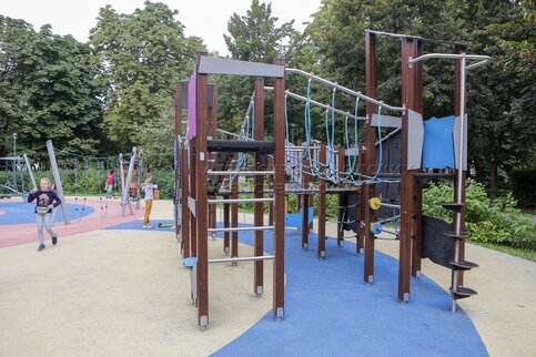 В северной части парка для детей установлен комплекс для лазания, песочница, качели, горки, полоса препятствий. А в тематическом комплексе «Корабль» малыши могут почувствовать себя настоящими моряками. Здесь также ведутся работы по укладке детской велодорожки.