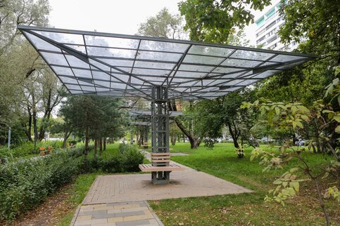 Укрыться от непогоды или палящего солнца, присесть и почитать книгу или просто полюбоваться природой гости парка могут в трех декоративных перголах и трех беседках.