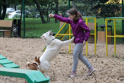 Не забыты и четвероногие друзья. Для выгула собак обустроена площадка с ограждением и специальным оборудованием площадью 462 кв.м.