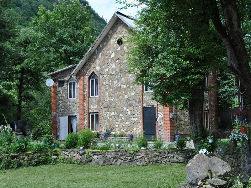 Месторасположение: гостевой дом "У Абдулаха" расположен у самого подножия скалы Монах на живописном берегу реки Бзыха в селе Хамышки.