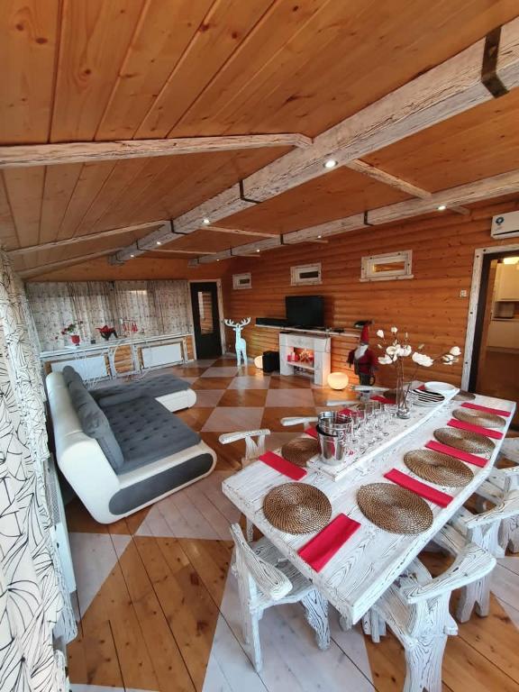 К услугам отдыхающих современная электроника - телевизор с плоским экраном. Для удобства постояльцев в ванной комнате есть стиральная машина, фен. Для организации питания и напитков вы можете воспользоваться холодильником, микроволновой печью. На территории обустроена мебель на улице, терраса, обеденная зона. Из окон гостевого дома вы сможете насладиться видом на реку.