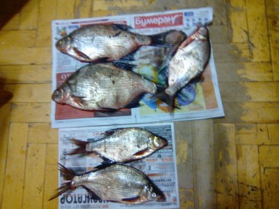 Ездил в Тараданово, щуку ловить. За 2 дня упорной ловли ни одной поклевки услышать не удалось. Поставили донки, забросив далеко в реку, и тут началось. Чебак дергает постоянно, но не засекается(крючки большие). Зато иногда подходят подлещики, а бывает забредают и лещи покрупнее. Немного все же наловили, как компенсация за щуку. На фото большие - 1,5 и 1 кг, маленькие - 0,5 кг.
