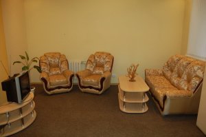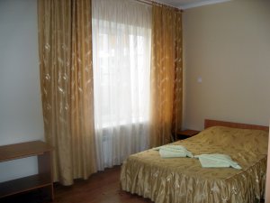 Полулюксы - номер из двух комнат: гостинной и спальной комнаты. В номере две полутораспальными кровати, шкаф для посуды, мягкая мебель, журнальный стол, ТВ, холодильник, телефон, шкаф для одежды, совмещенный санузел.