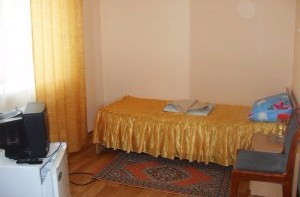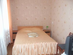 Одноместные номера "Дуэт" – однокомнатный номер с двухспальной кроватью, ТВ, радиоприемник, телефон, холодильник, шкаф для одежды, совмещенный санузел.