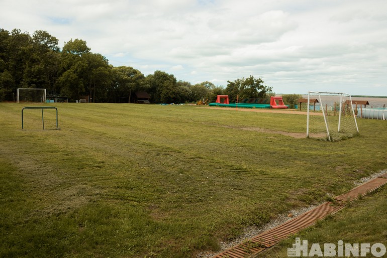 - Летом: волейбольная и футбольная площадка, настольный теннис, бадминтон, футбол в воде в надувной платформе, мячи, ракетки